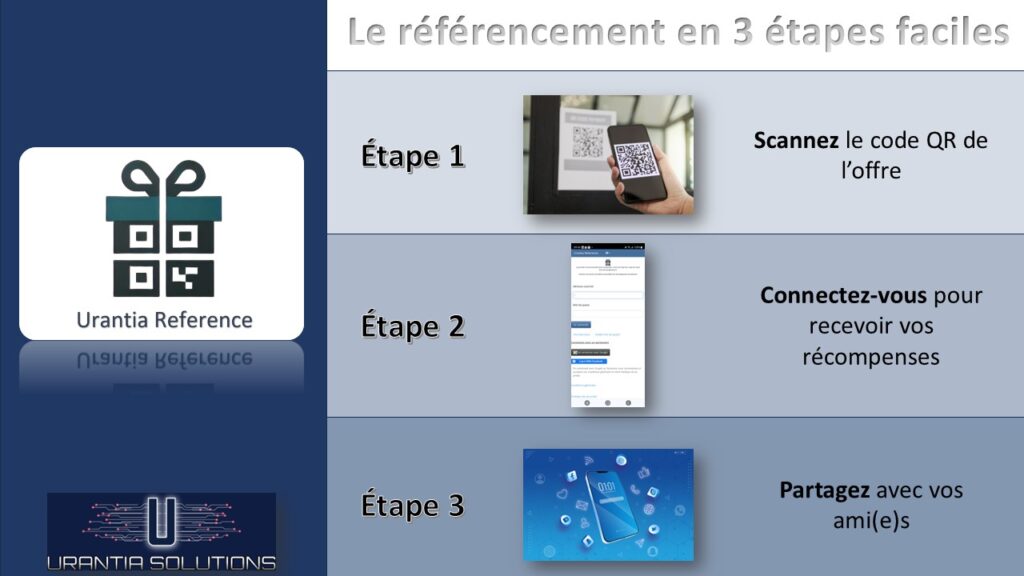 Urantia Reference est une solution de référencement par code QR qui aide les entreprises à augmenter leur acquisition de clients en transformant leurs clients satisfaits en véritables ambassadeurs. La plateforme rend les références simples à partager, faciles à suivre et motivantes grâce aux récompenses, transformant chaque interaction en croissance mesurable.